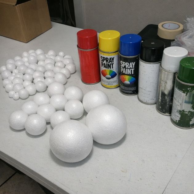12 styrofoam balls, 6 inches in diameter