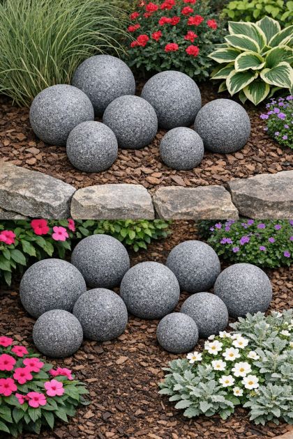Transform your garden with these DIY faux concrete garden spheres that are both budget-friendly and visually stunning. By using simple styrofoam balls and textured spray paint, you can create the look of sophisticated concrete spheres without the heavy lifting or high cost. These spheres add a modern touch to any garden, enhancing the aesthetic of your flower beds with their sleek, contemporary appearance.