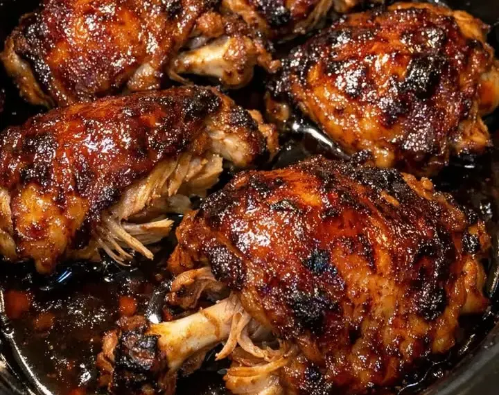 Once the chicken is fully cooked and very tender, remove the lid and let it cook on HIGH for another 15 to 20 minutes with the lid slightly vented or propped open. This helps the sauce thicken and concentrate into a rich, mahogany-colored glaze around the thighs.